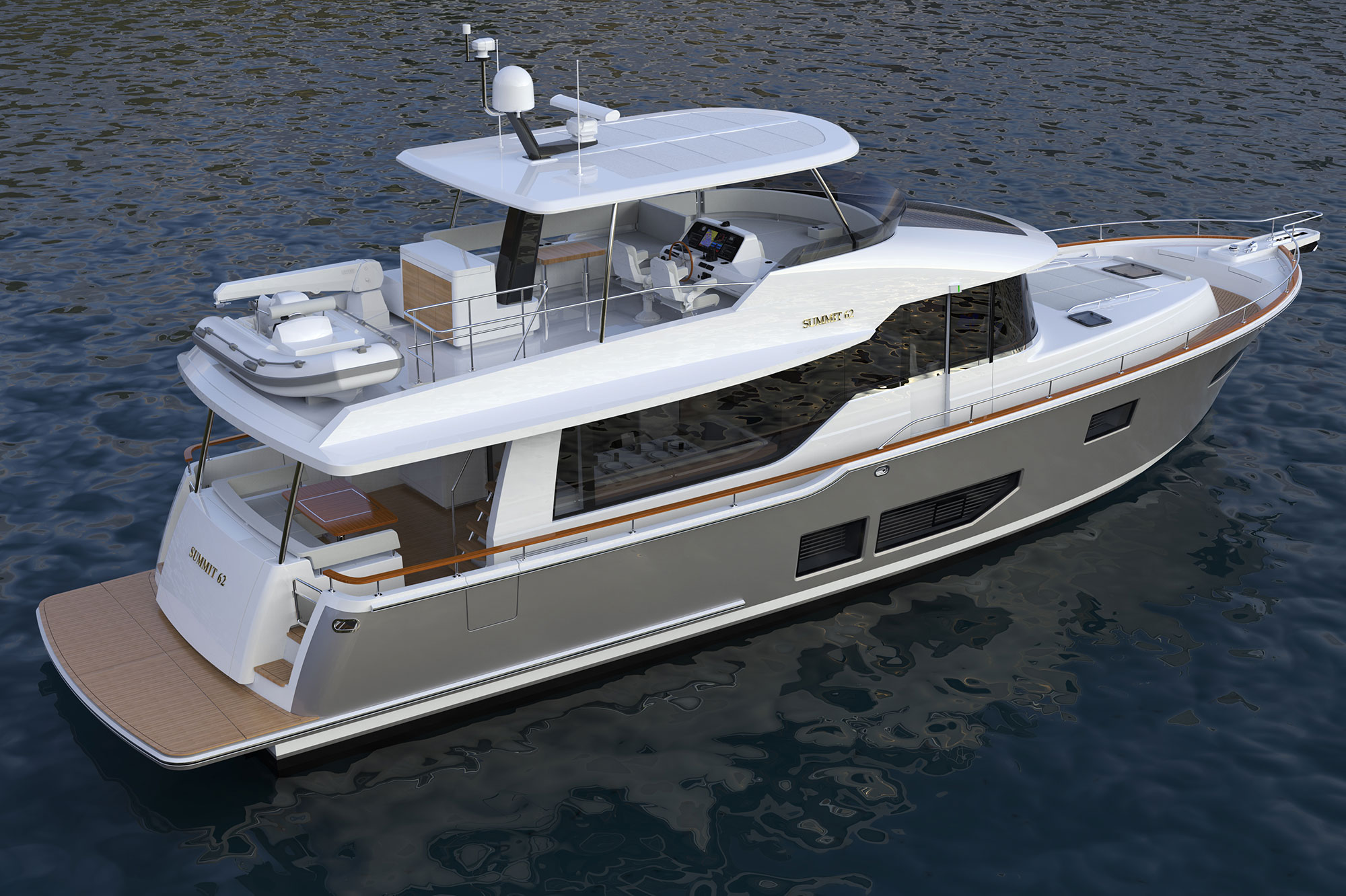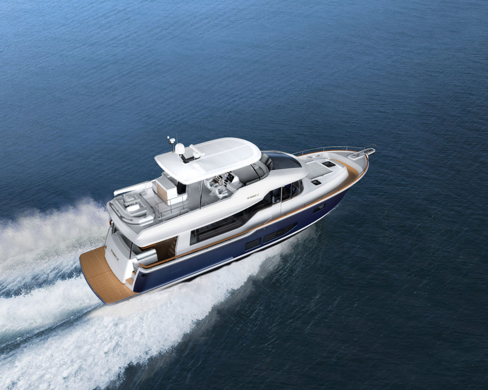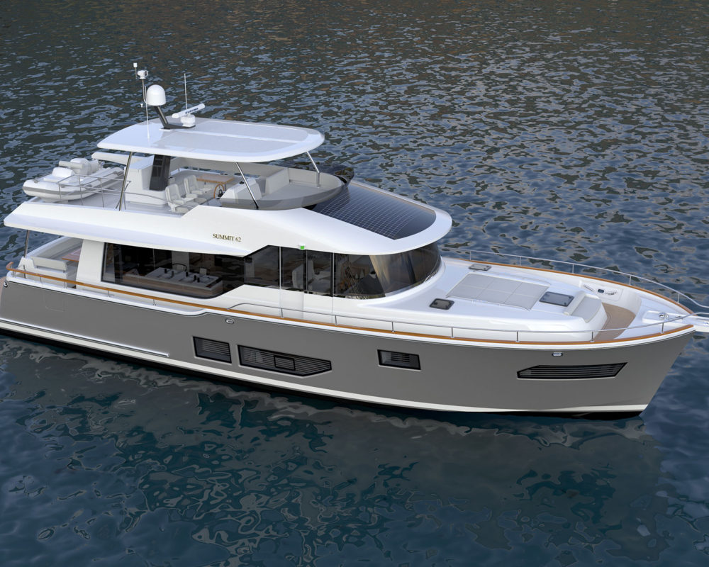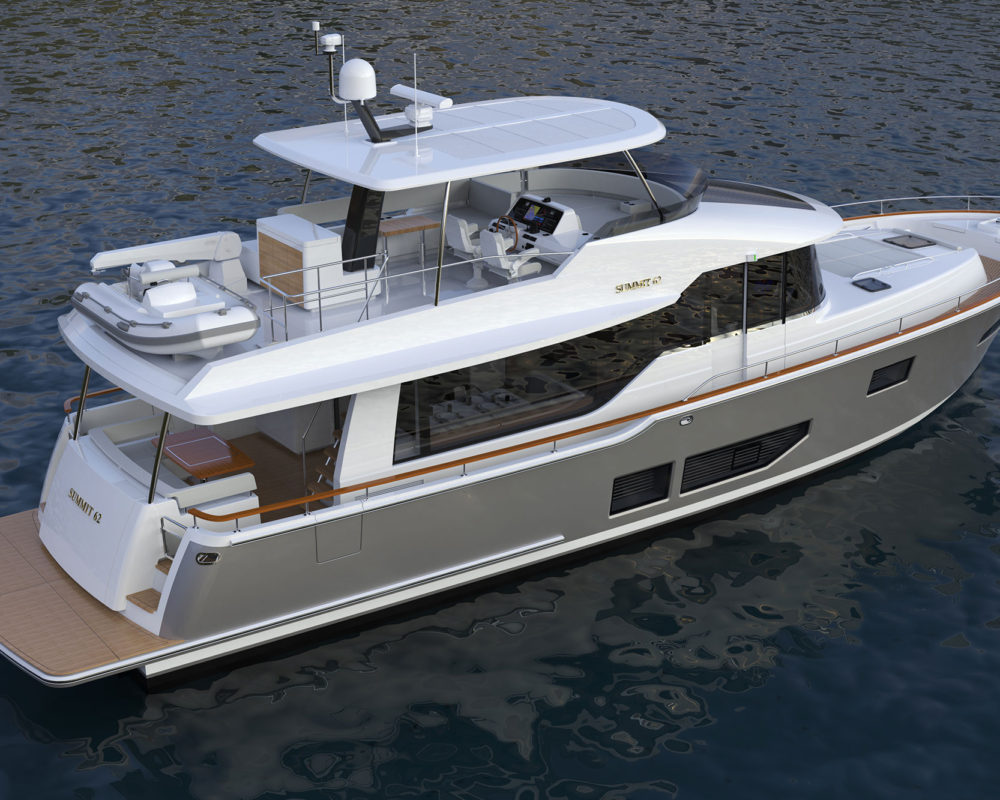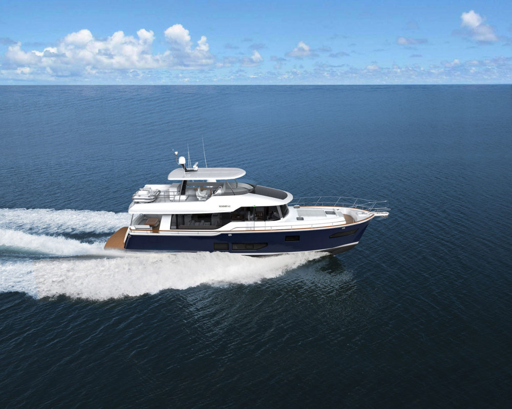 There’s always more to a new yacht model than just a leap up in size, and the Summit 62 MY is no exception. This yacht could wisely be considered an exponential take on the Summit 54 MY, with more than just deck space sized up to fill out the hull measuring 68 feet 7 inches LOA with an 18-foot 2-inch beam.